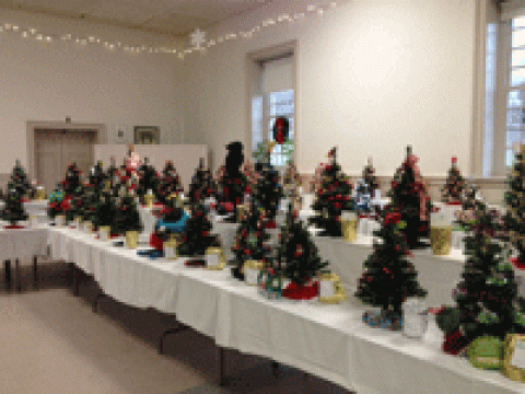 The Showcase is part of the annual Williamstown Holiday Walk. Members of the community, schools, churches, local businesses and community organizations are invited to purchase miniature artificial trees for $7 each and to decorate them for the showcase and raffle.